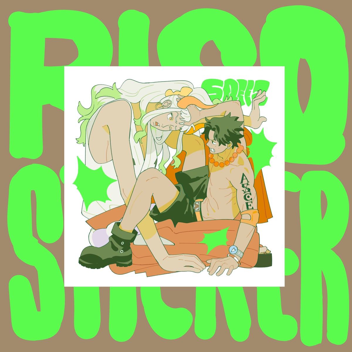 B grade bundle includes 3 random stickers that has bad registration, where color layer does not align. Due to the smaller size some registration margin could be quite huge.